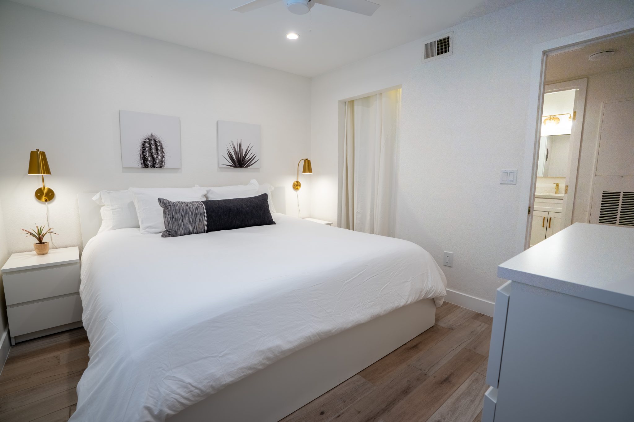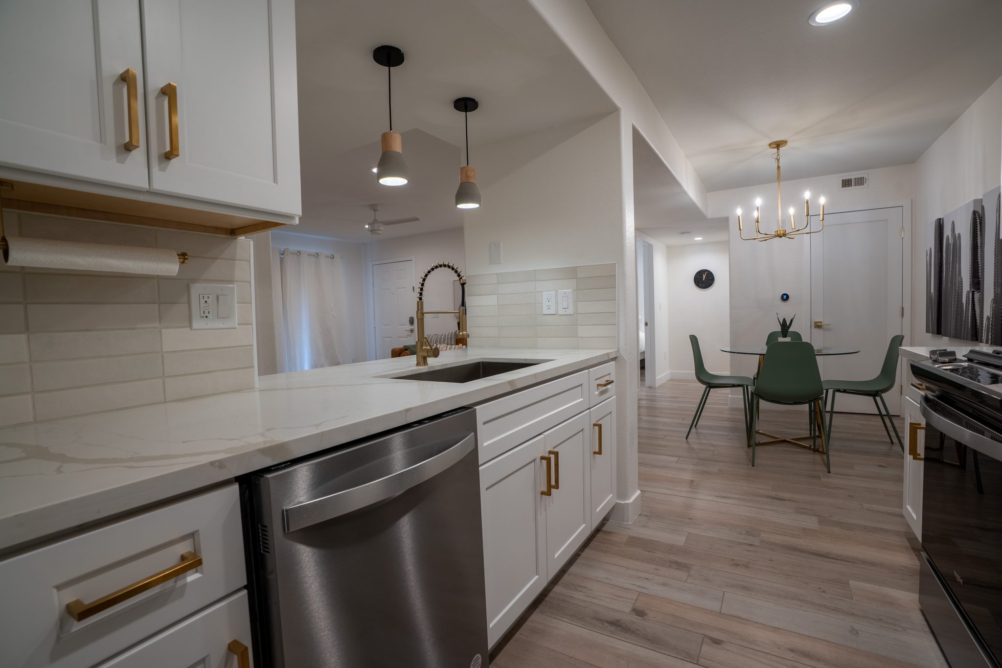 Experience turn-key living at its finest in this stylish, fully furnished and newly renovated 2 bedroom, 2 bathroom executive condo. Designed with comfort and style in mind, this executive property boasts a host of luxurious amenities including walk-in closets, a gourmet kitchen with stainless steel appliances, spa-like bathrooms with luxurious showers, in-suite laundry, and comfortable furnishings, including 2 king size beds. Enjoy the convenience of a Nest thermostat and free high-speed wifi, as well as a private patio for relaxing and entertaining.