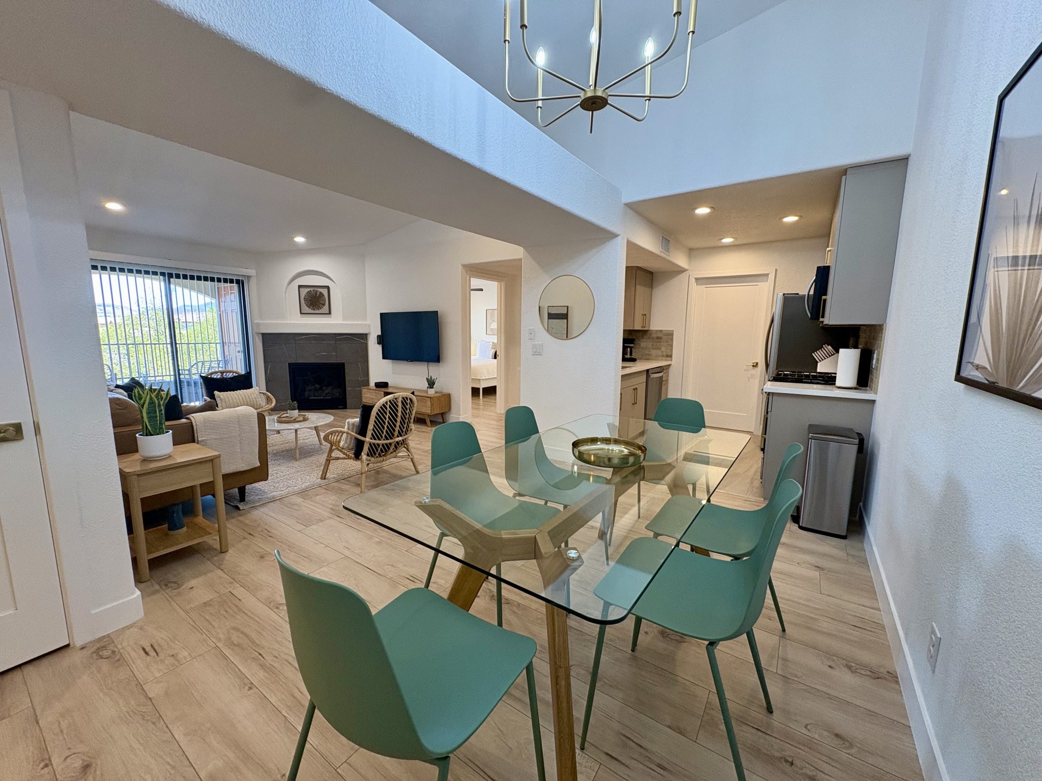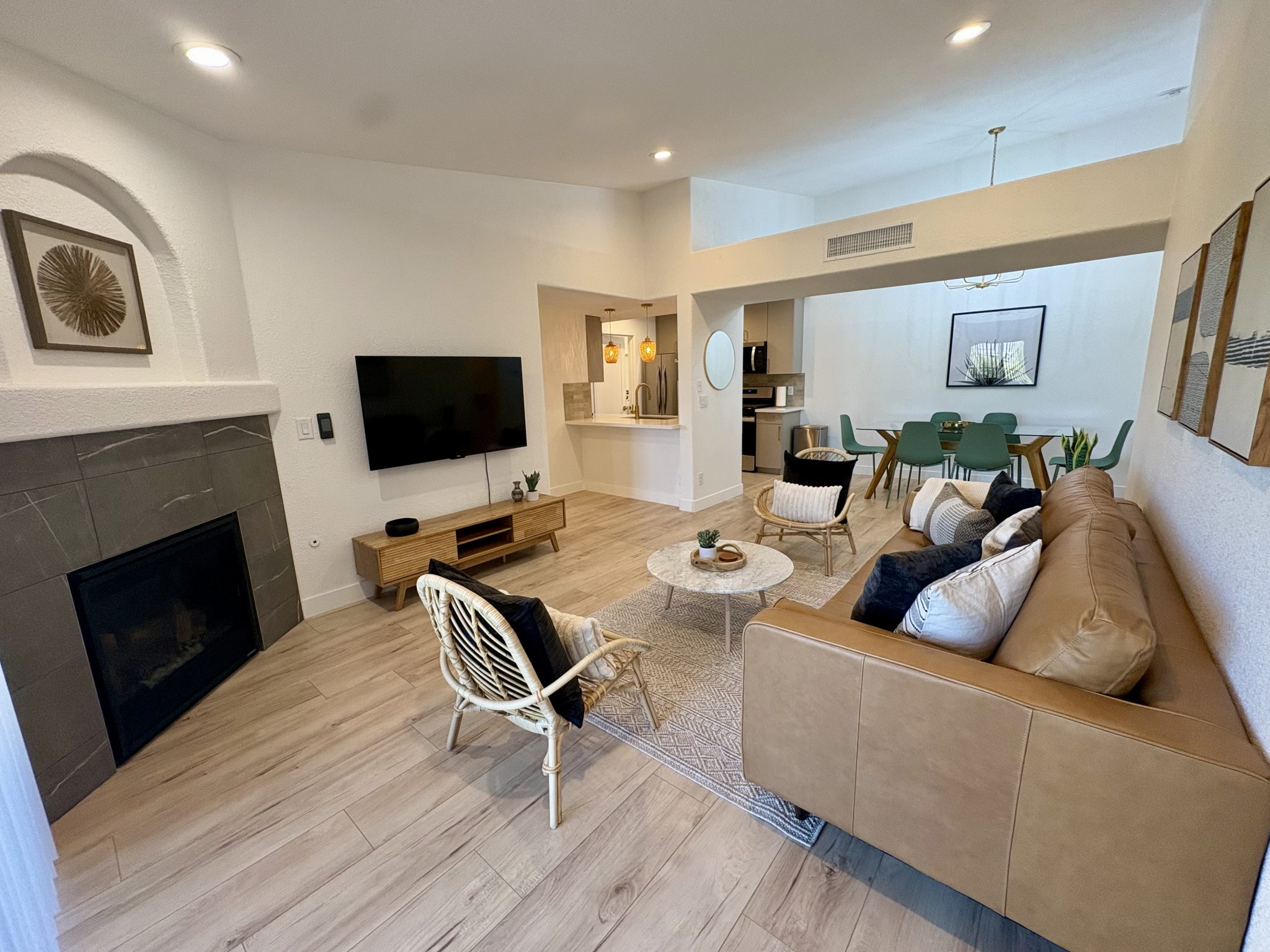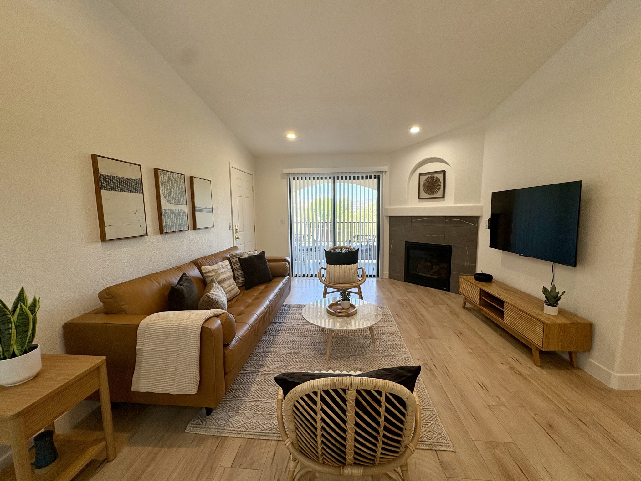 Wake up to the glow of desert light and sip your morning coffee on a private patio overlooking peaceful mountain views and mature trees. Inside, you’ll find a gorgeous, fully equipped kitchen, smart TVs in every room, 300 Mbps high-speed WiFi, and a cozy fireplace to make you feel right at home.