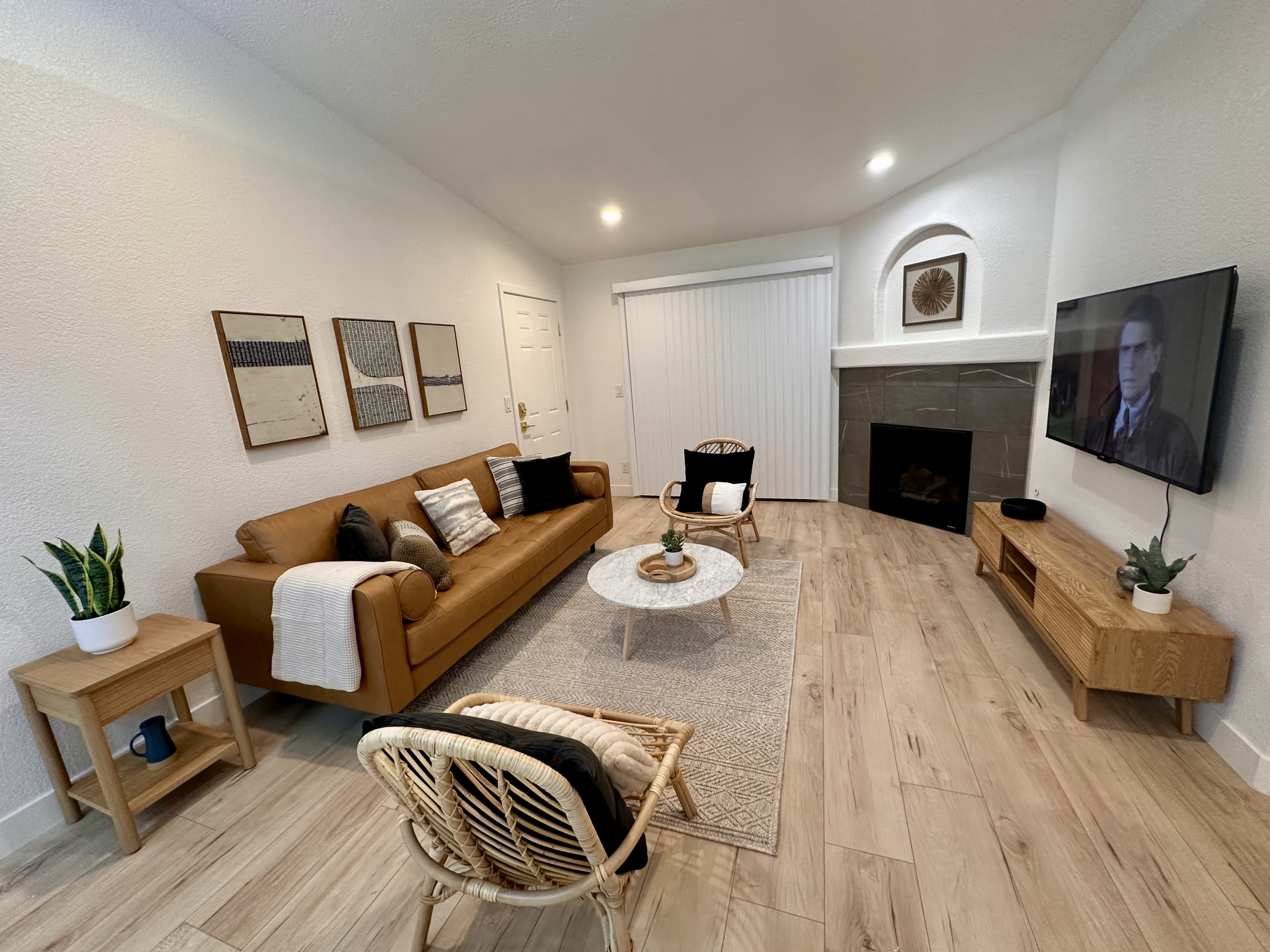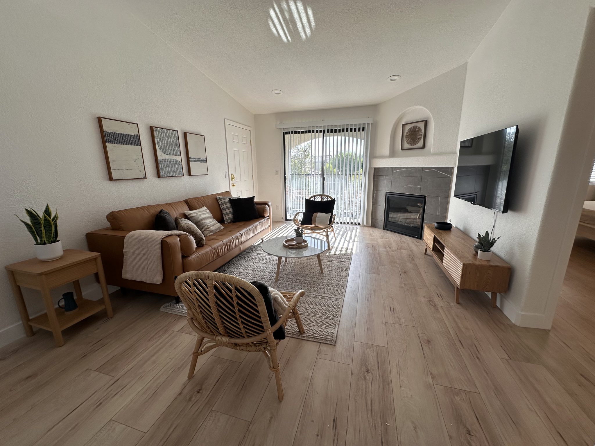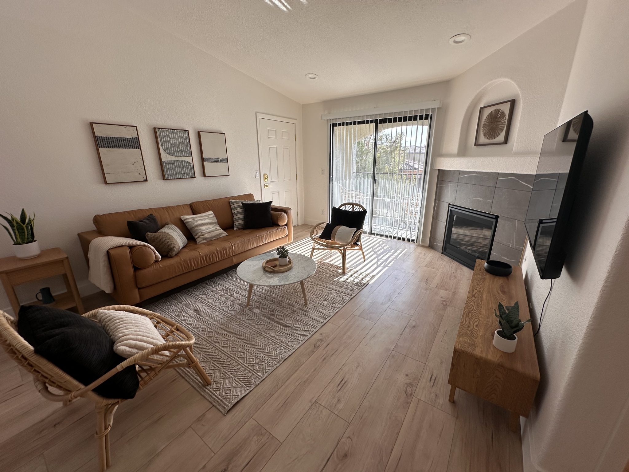 Wake up to the glow of desert light and sip your morning coffee on a private patio overlooking peaceful mountain views and mature trees. Inside, you’ll find a gorgeous, fully equipped kitchen, smart TVs in every room, 300 Mbps high-speed WiFi, and a cozy fireplace to make you feel right at home.